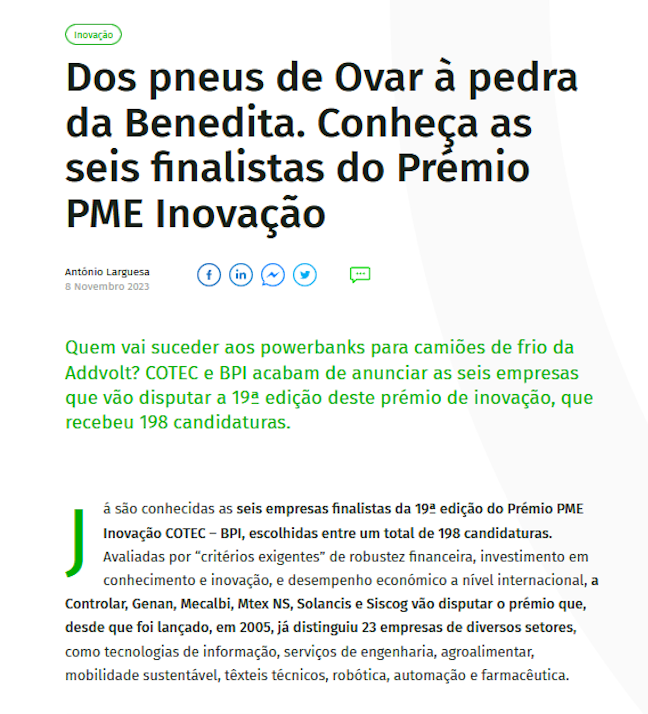 Powerbanks’ para camiões de frio: a Addvolt, instalada em Matosinhos, desenvolveu, patenteou e comercializou um sistema pioneiro plug-in para alimentar o sistema de refrigeração em modo eléctrico, reduzindo o desperdício no transporte, consumo de combustível e emissões.